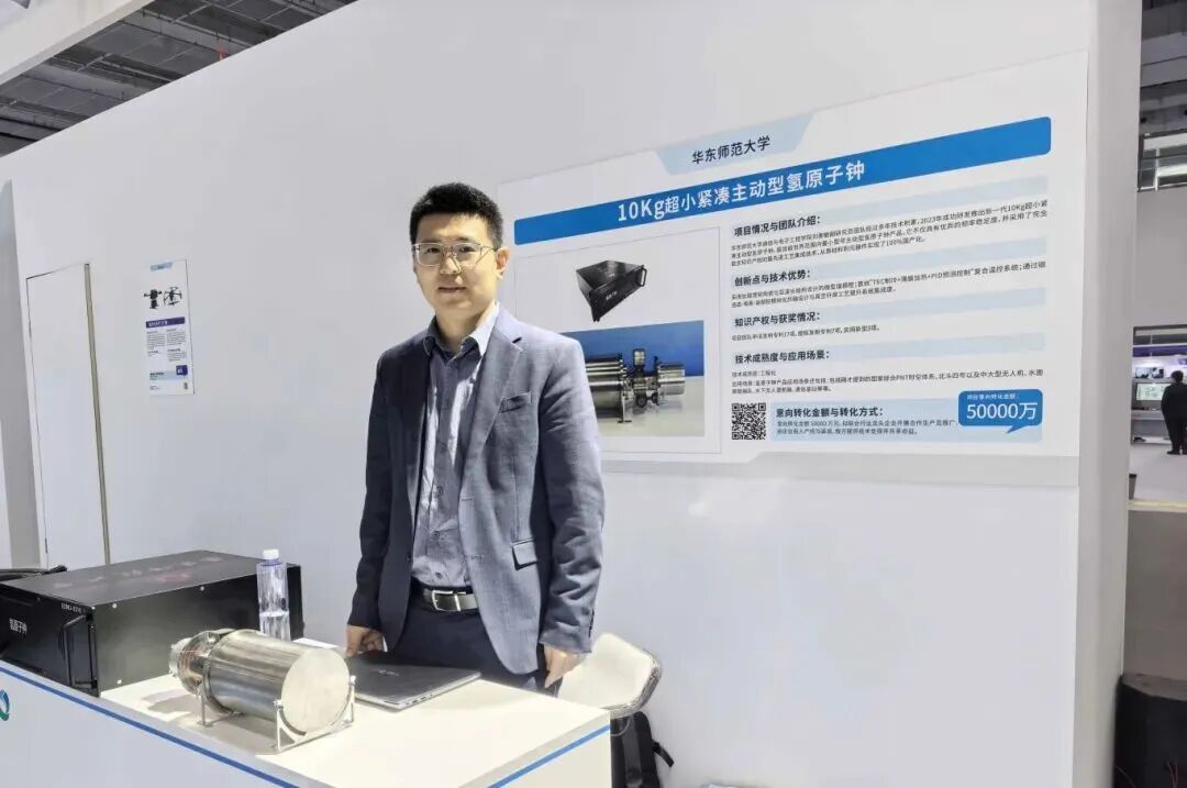 我校共7项创新成果在高校展区展出,受到观众的广泛关注。其中,学院参展的“10Kg超小紧凑主动型氢原子钟”与“无线高通量脑机接口芯片”两项成果入选成果超市高端装备、人工智能+专区展区进行实物展。