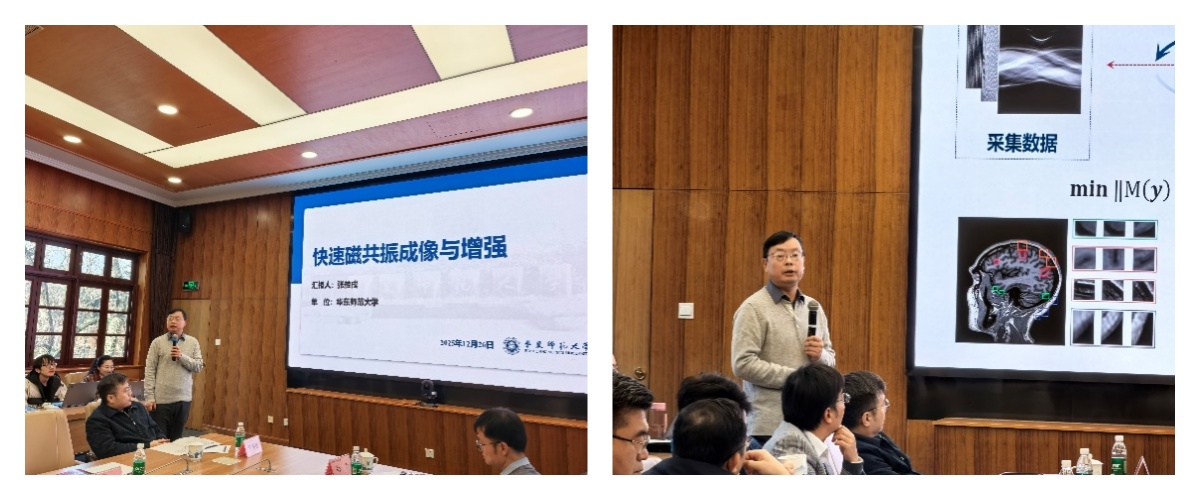 华东师范大学张桂戌教授在《快速磁共振成像与增强》报告中,针对传统磁共振成像速度慢的瓶颈,系统梳理了成像原理与加速方法。他围绕欠采样与并行成像两条技术路径,介绍了模型驱动与数据驱动两类重建范式,并进一步提出四种增强思路:模型与数据融合、挖掘自身数据知识、利用相邻切片信息以及跨模态信息互补,以全面提升成像质量与临床实用性。